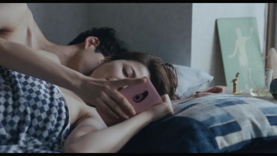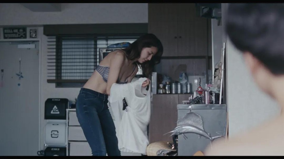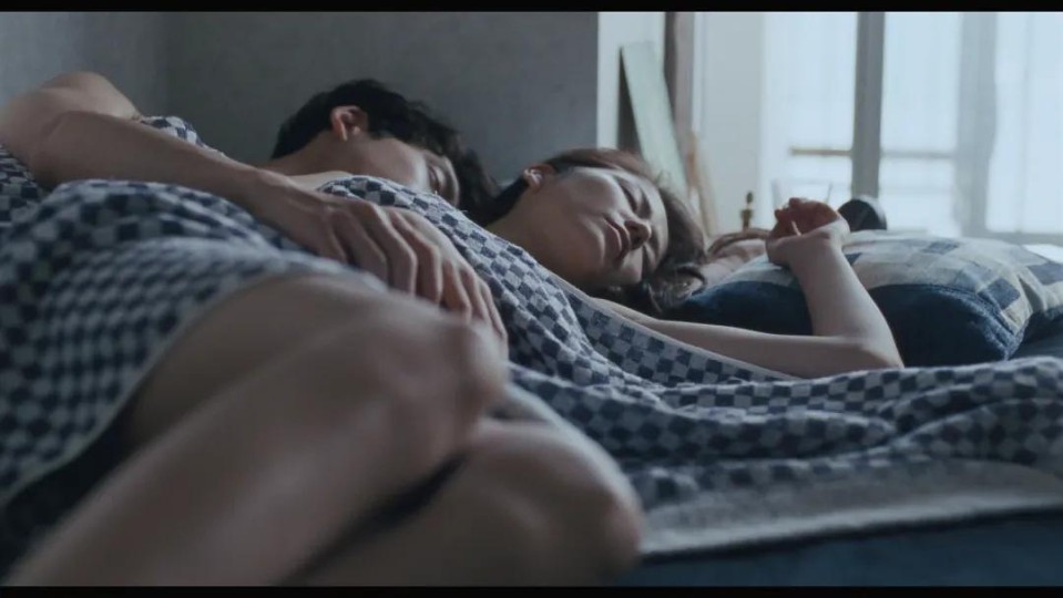 好,紧接着,镜头由下往上移动,随之而来的是香田佳乃和她的男朋友睡在一起的画面,背景中伴随着海浪声,粗略告诉我们故事发生的地点——海旁。