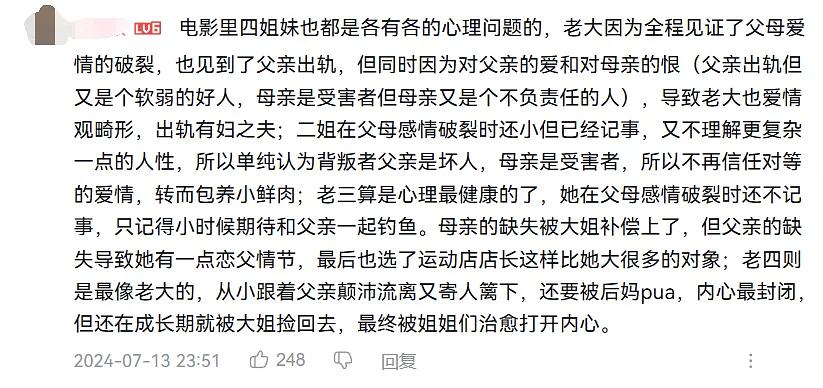 再说到“她们的父亲”,影片中,三姐妹对父亲的态度显得宽容而自然。