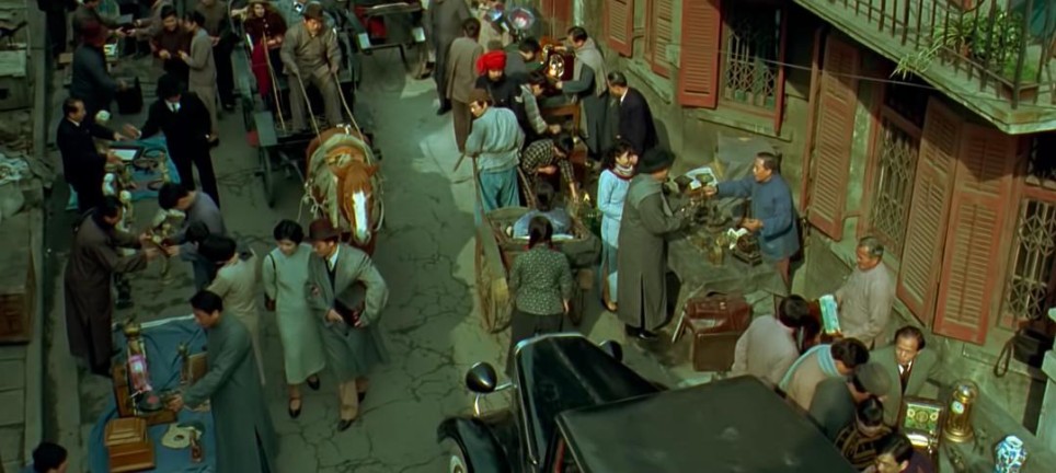 那么何为“电影里的老上海”呢?我想这个描述能够更精准的表达,年代剧里借用上海的实地场景打造“老上海”风貌环境的那些片场。比较经典的就有1987年斯皮尔伯格的《太阳帝国》。剧中主要勘景了上海外滩、苏州河、黄河路和凤阳路口等街景作为片场,道具组和服饰组以老店招牌、宣传标语和老物件(交通工具如:黄包车、有轨电车、老式汽车、黄包车茶杯、细节包括家具、报纸、杂志…)等,配合剧中演员们的服装服饰加上化妆形象设计,还原出1941年代的那个老上海。z